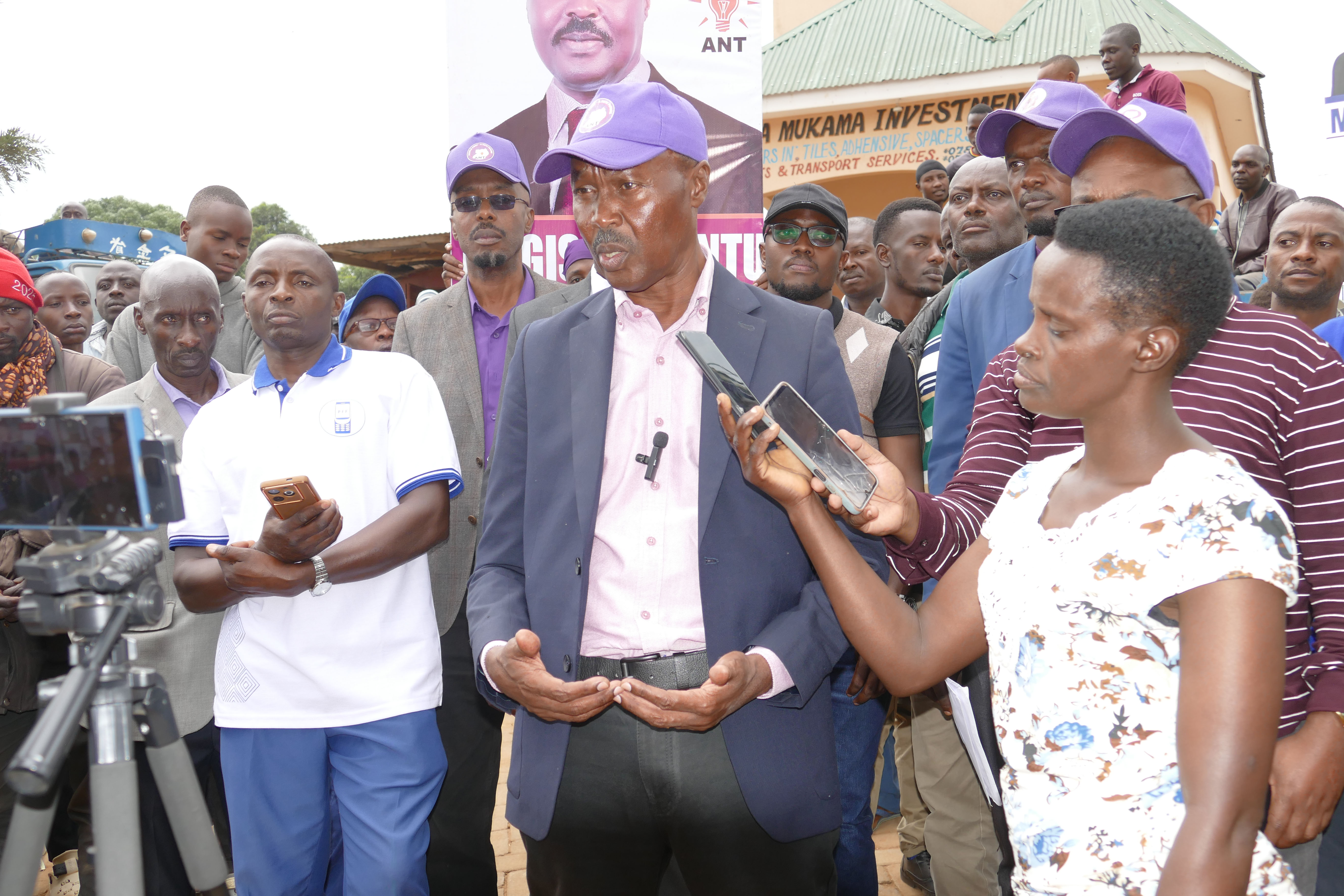 GEN.Gregory Mugisha Muntu akwatidde ekibiina kya ANT bendera ku bwapulezidenti asaggudde akalulu mu disitulikiti y'e Ntungamo gy'asibuka n'alabula abalonzi okukomya okulondanga abakulembeze abaluvu olw'okukyamuukirira.